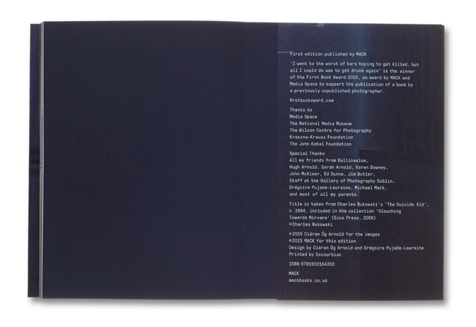 «I went to the worst of bars hoping to get killed, but all I could do was get drunk again». Ciáran Óg Arnold, издательство MACK, 2015: